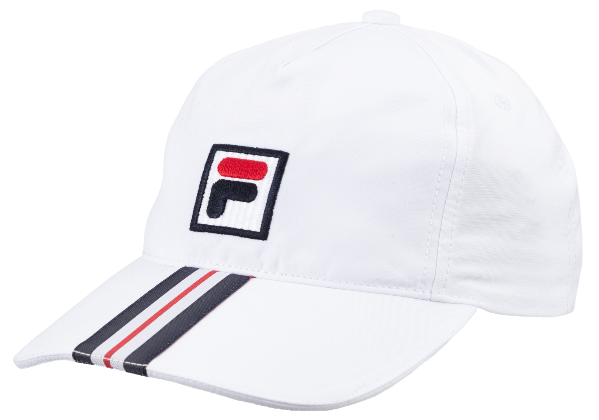 Die Cap Bobby besteht aus robustem, pflegeleichtem Polyester (PES) und bietet ein angenehm leichtes Tragegefühl auf dem Court. Optisch prägen die klassische 6-Panel-Konstruktion mit gebogener Krempe, gestickte Ventilationsösen, ein markanter FILA-Logo-Patch vorne sowie das vertikale Streifendetail den Look. Die Materialien trocknen rasch und unterstützen ein gutes Klima unter der Kappe – ideal für Matches, Training und Erholung.