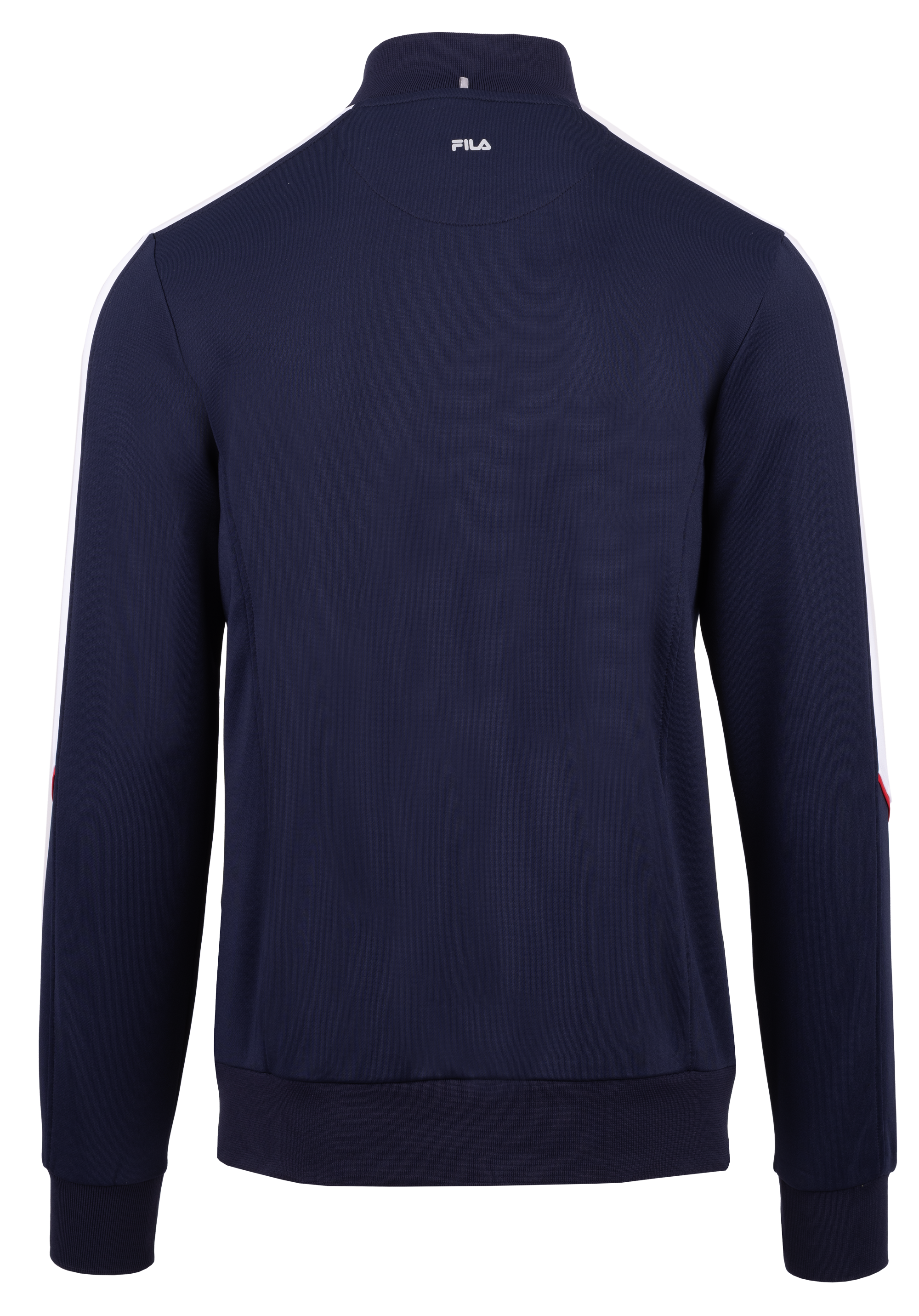 Jacket Manuel - klassisch gehalten in angenehm zu tragender Funktionsware. Farblich abgesetzte Stripes an Bund und Ärmeln. Zipper an Taschen und hochschließend beim Kragen. Fila Brand Logo dezent angebracht.