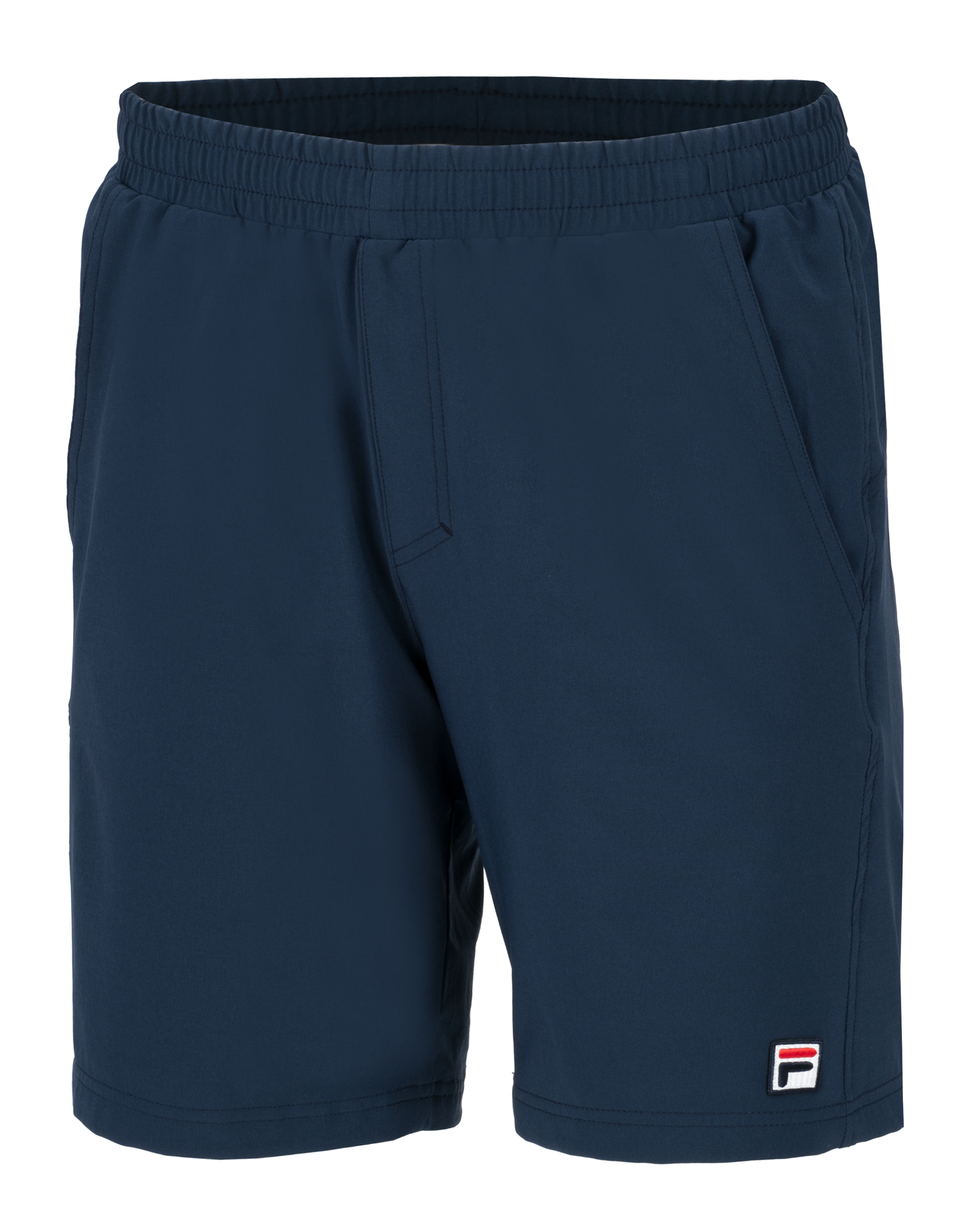 Shorts Santana - mit optimaler Bewegungsfreiheit durch elastischen Taillenbund, integriertem Kordelzug und Seitentaschen. Hochwertiges, atmungsaktives Material, mit praktischem 4-Way-Stretch und leichtem Mesh-Futter sorgt für den perfekten Tragekomfort und genügend Bewegungsfreiheit. Auch bei längeren Ballwechseln sitzt sie perfekt. FILA- Logo auf dem linken Bein.