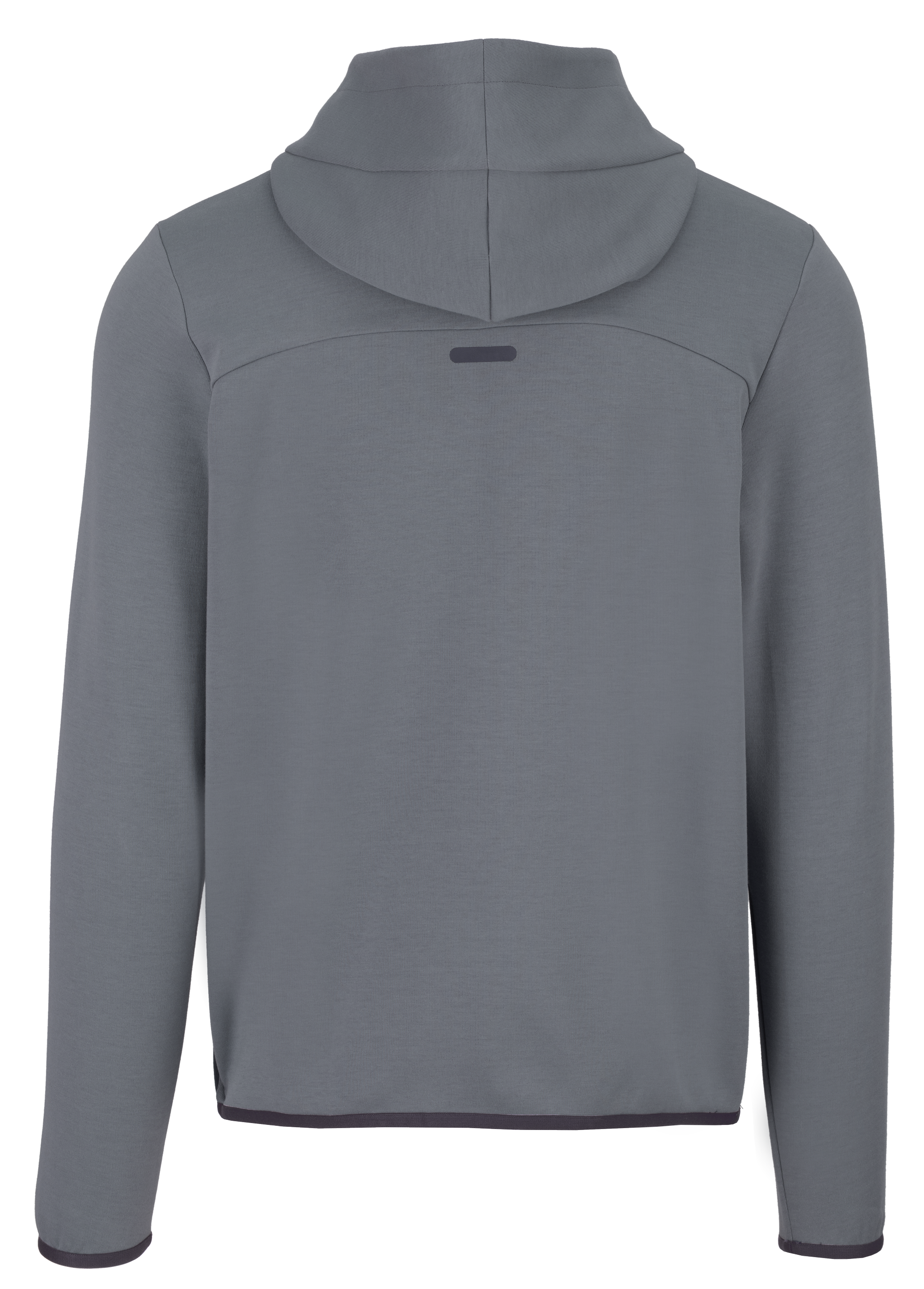 Schlichte, stilistische Sport-Sweatjacke inklusive Kapuze - mit dezenten kontrastfarbigen Designelementen.