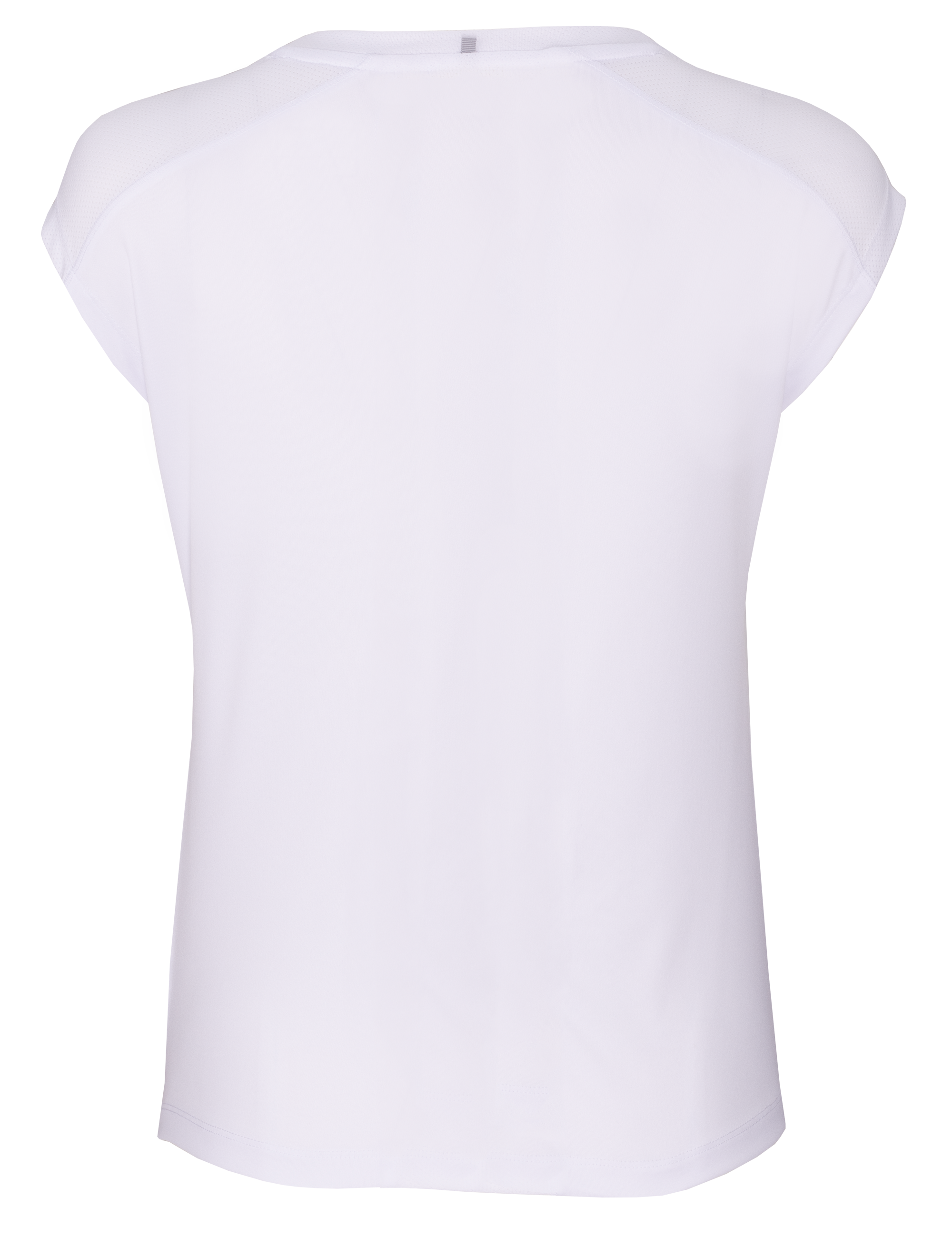 Das T-Shirt Maria besteht aus einem hochwertigen Nylon/Elasthan-Mix. Der Stoff ist weich, dehnbar und formstabil, leitet Feuchtigkeit schnell ab und trocknet zügig. Optisch gezeichnet durch einen femininen V-Ausschnitt mit kontrastierter Einfassung, kurze Ärmel bzw. Cap-Sleeves sowie seitliche Teilungsnähte, die die Silhouette betonen. Markante, perforierte Mesh-Einsätze im Schulterbereich. Stretch-Material für volle Bewegungsfreiheit, während die atmungsaktiven Mesh-Zonen das Klima regulieren. Pflegeleichtes und robustes Material – ideal für Training und Match. Vielseitig kombinierbar.