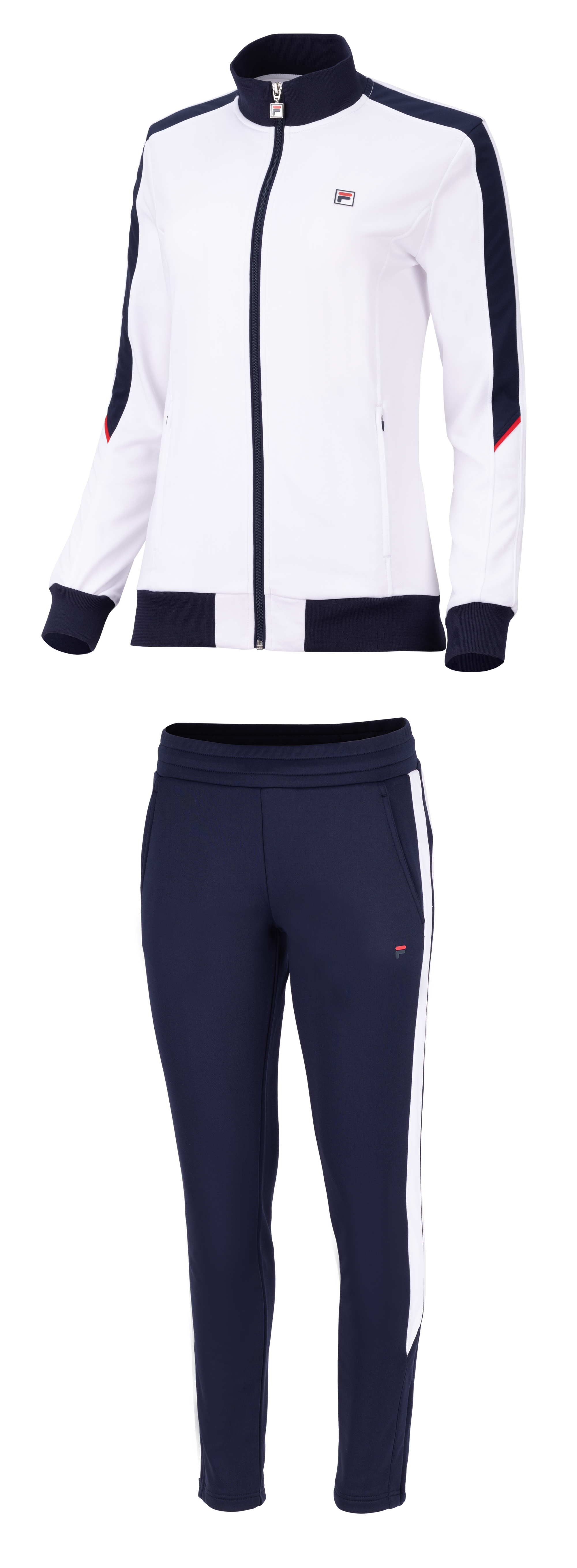 Klassischer Tracksuit aus Funktionsware mit Kontraststreifen - zugehörige lange Hose mit dezentem FILA-Branding.