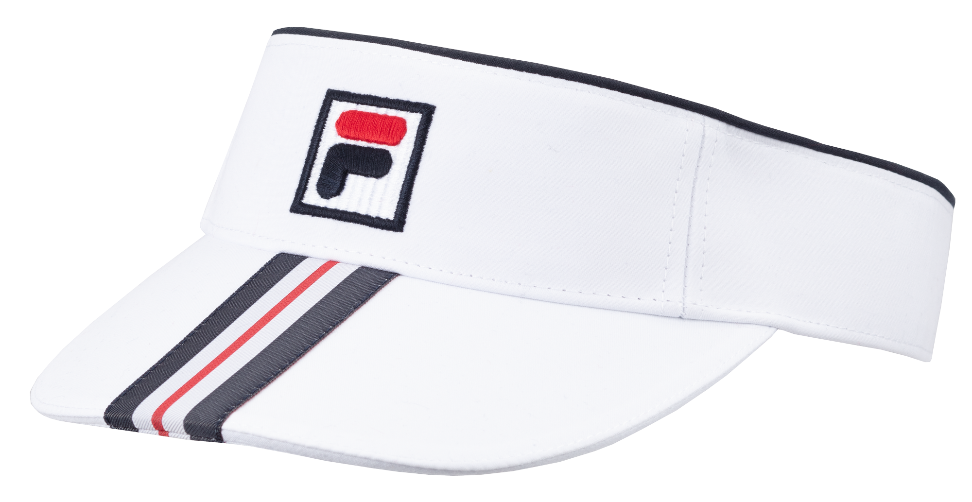 Leichter Tennis-Visor mit gebogenem Schild und FILA-Logo – reduziert Blendung und hält den Blick frei auf den Ball.